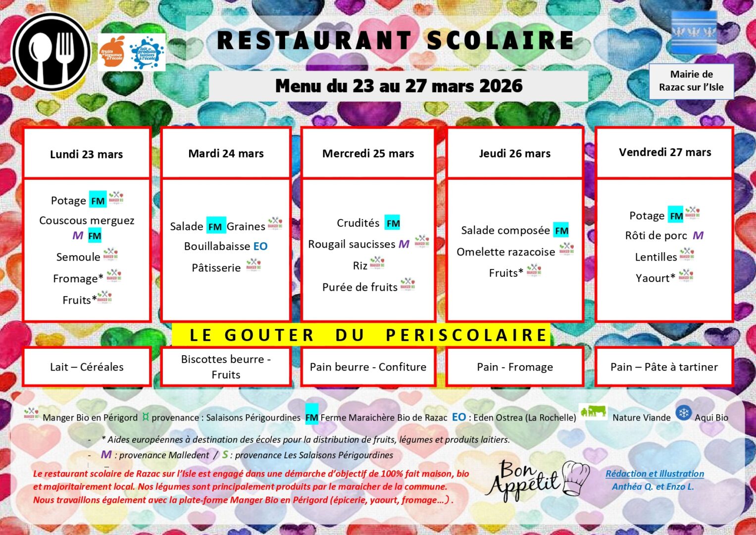Le restaurant scolaire de Razac sur l’Isle est engagé dans une démarche d’objectif de 100% fait maison, bio et local.