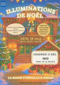 Razac s’illumine et la magie de Noël s’installe dans le bourg! Laissez-vous emporter par l’esprit des fêtes et profitez de